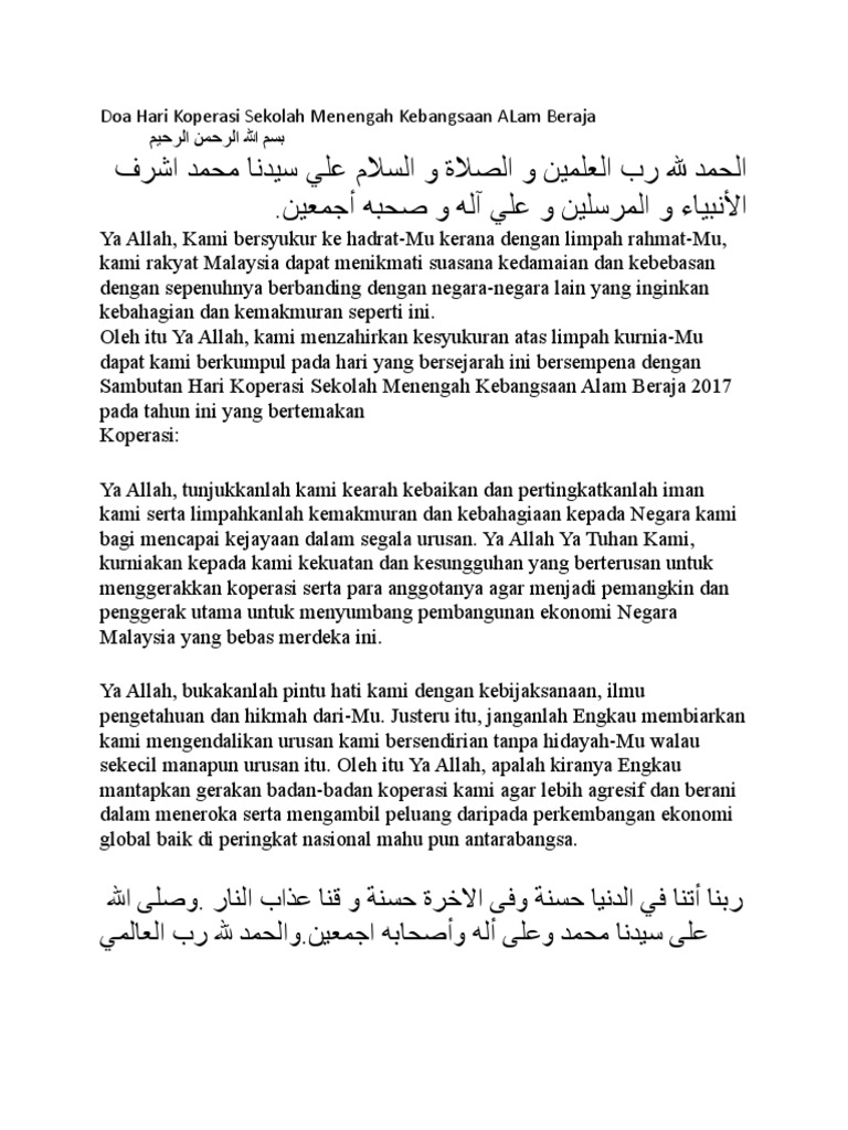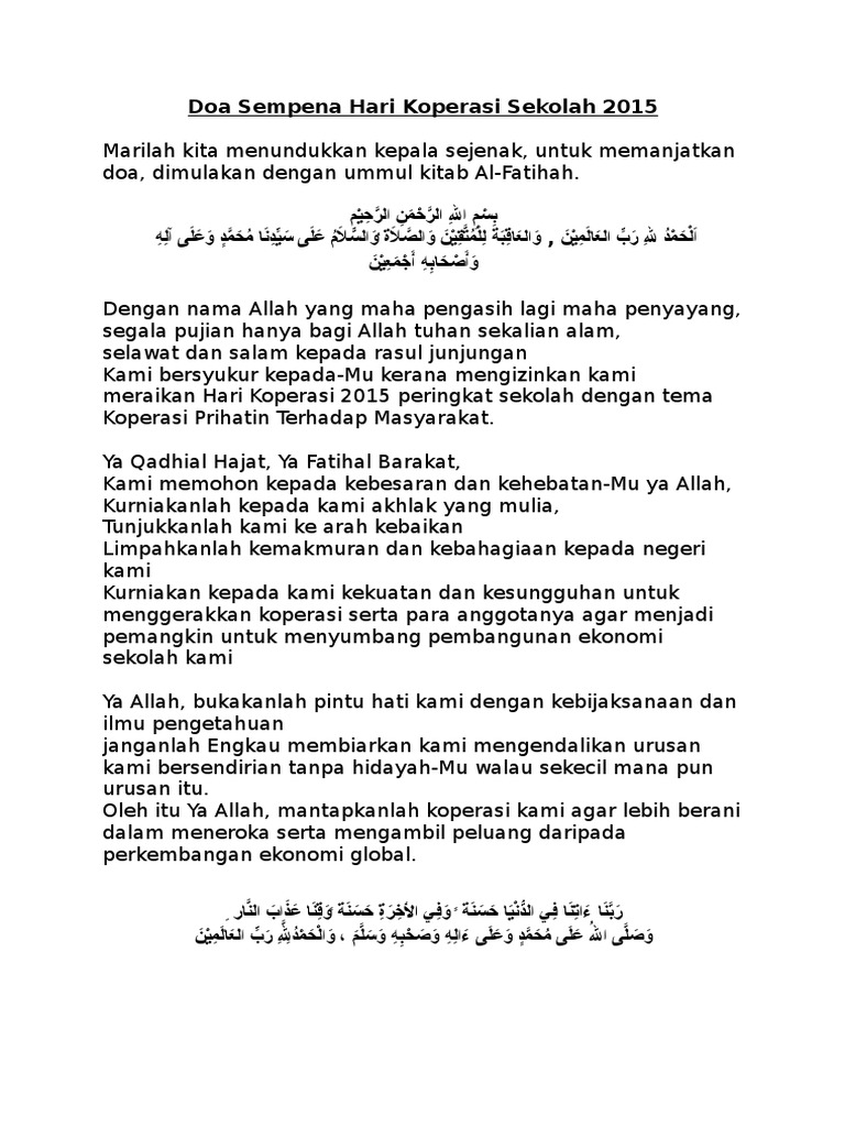 Doa Sempena Hari Koperasi Sekolah 2015 Pdf